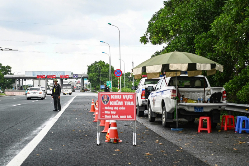 | CSGT kiểm tra nồng độ cồn lái xe. |