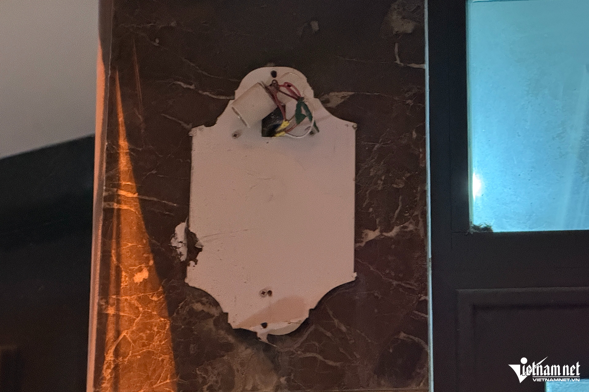 | Gạch và đèn trang trí ở hiên nhà số 70 bị vỡ sau cú va chạm. Ảnh: Đình Hiếu |