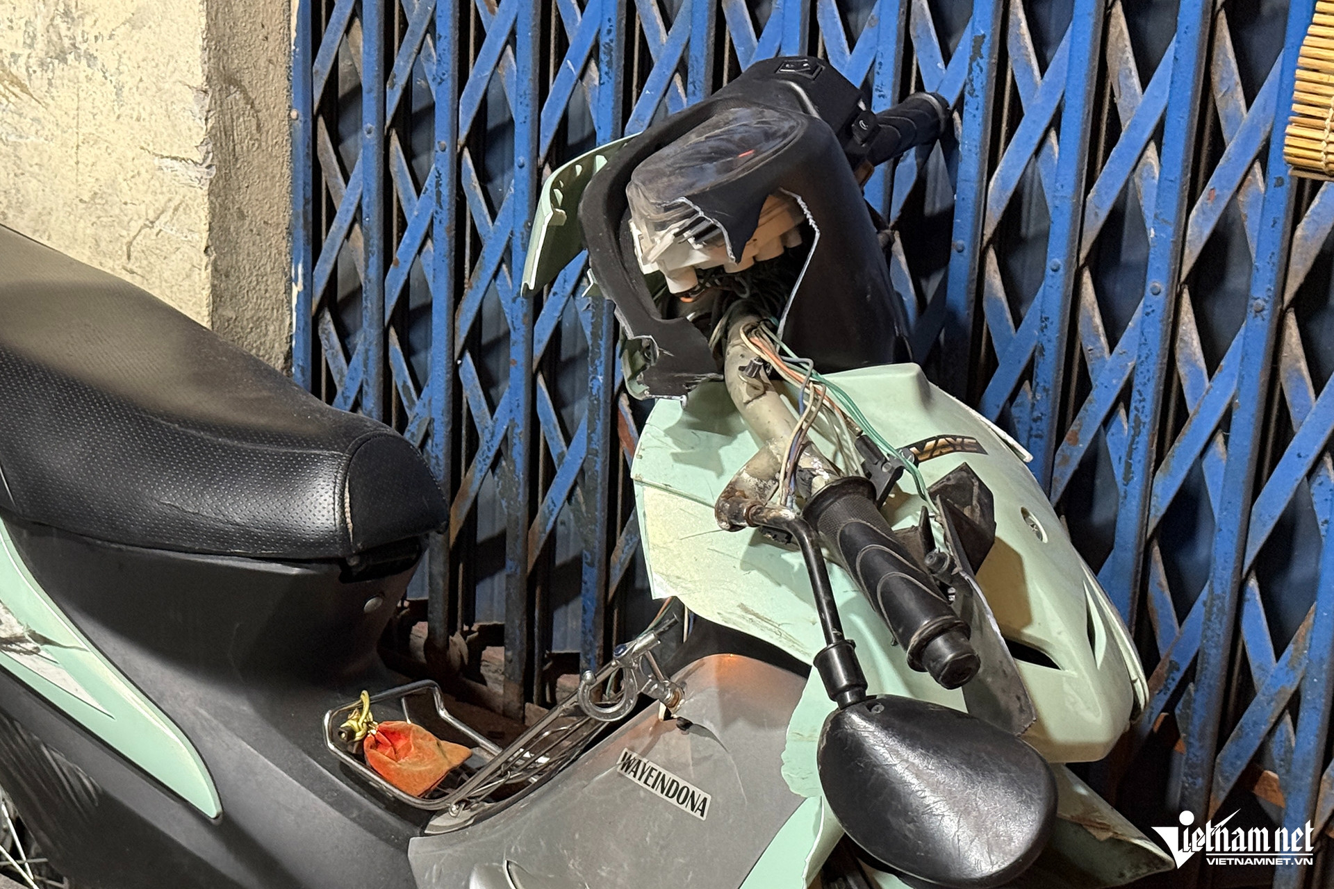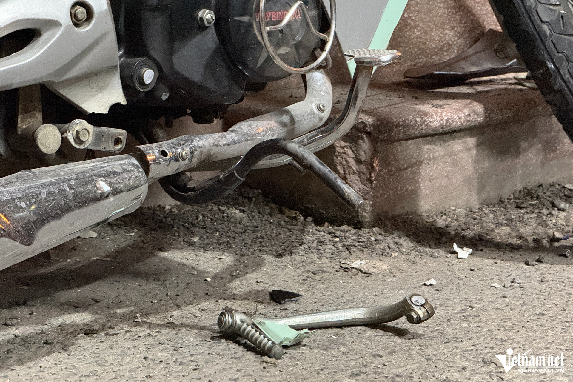 | Xe máy bị ô tô tải kẹp trúng khiến nhiều bộ phận bị gãy rời. Ảnh: Đình Hiếu |