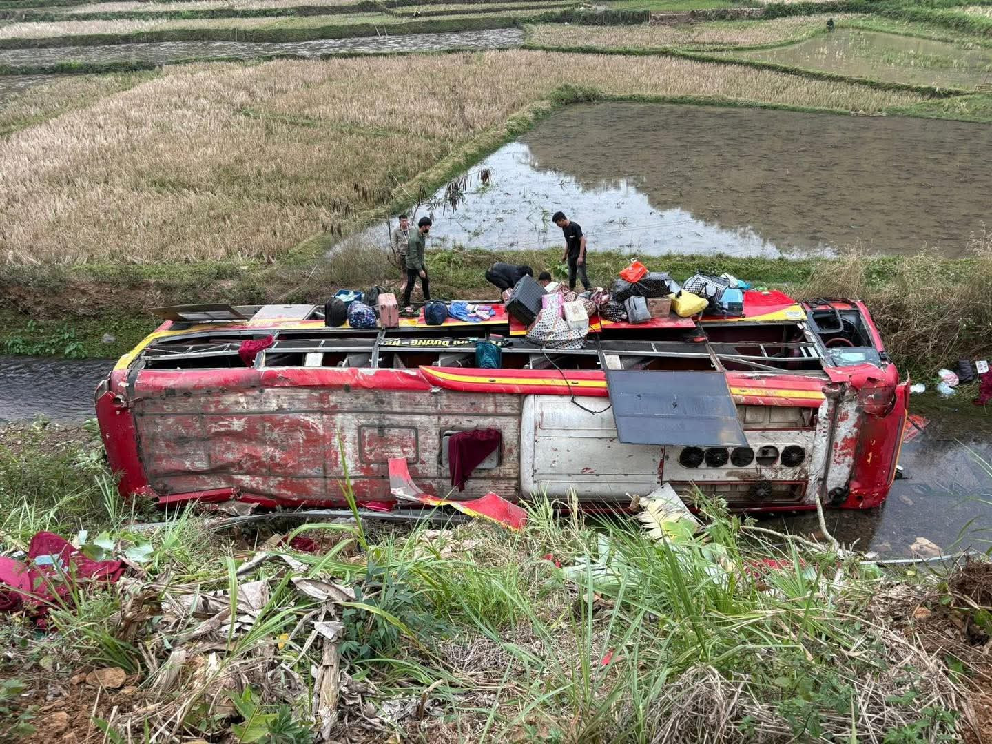 | Hiện trường vụ lật ô tô khách ở xã Phiêng Pằn. Ảnh: Xã Phiêng Pằn |