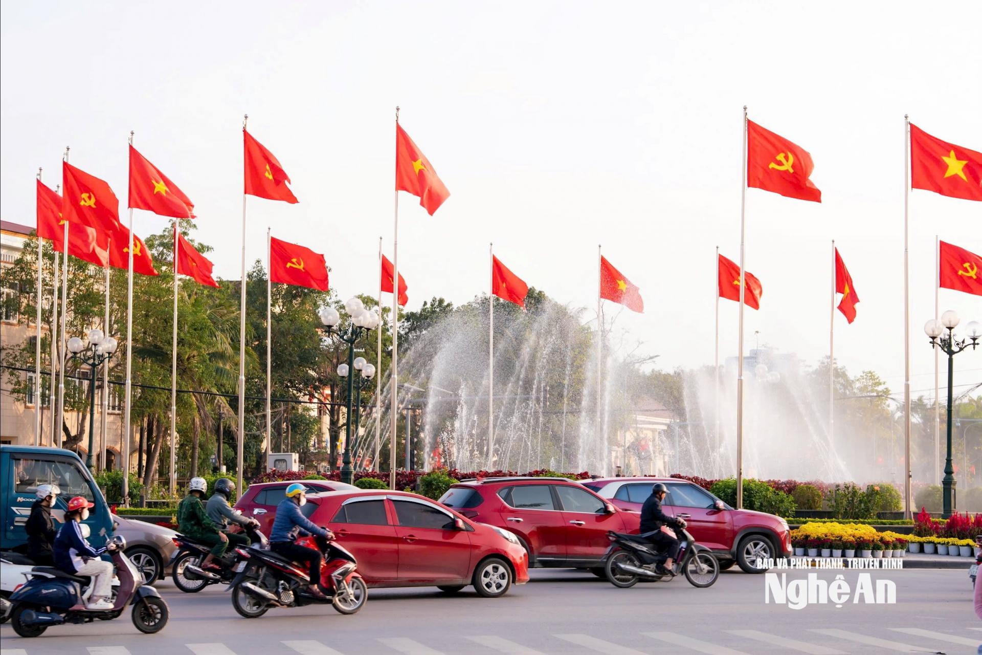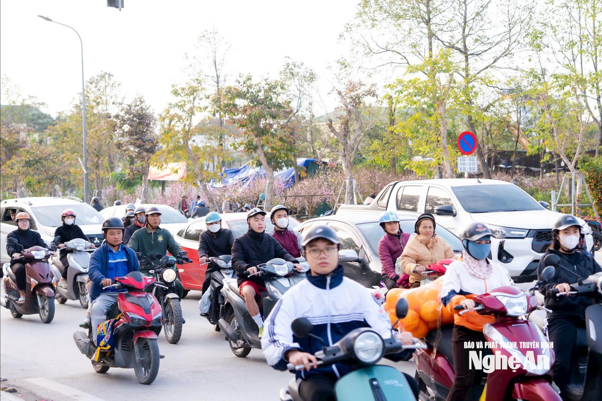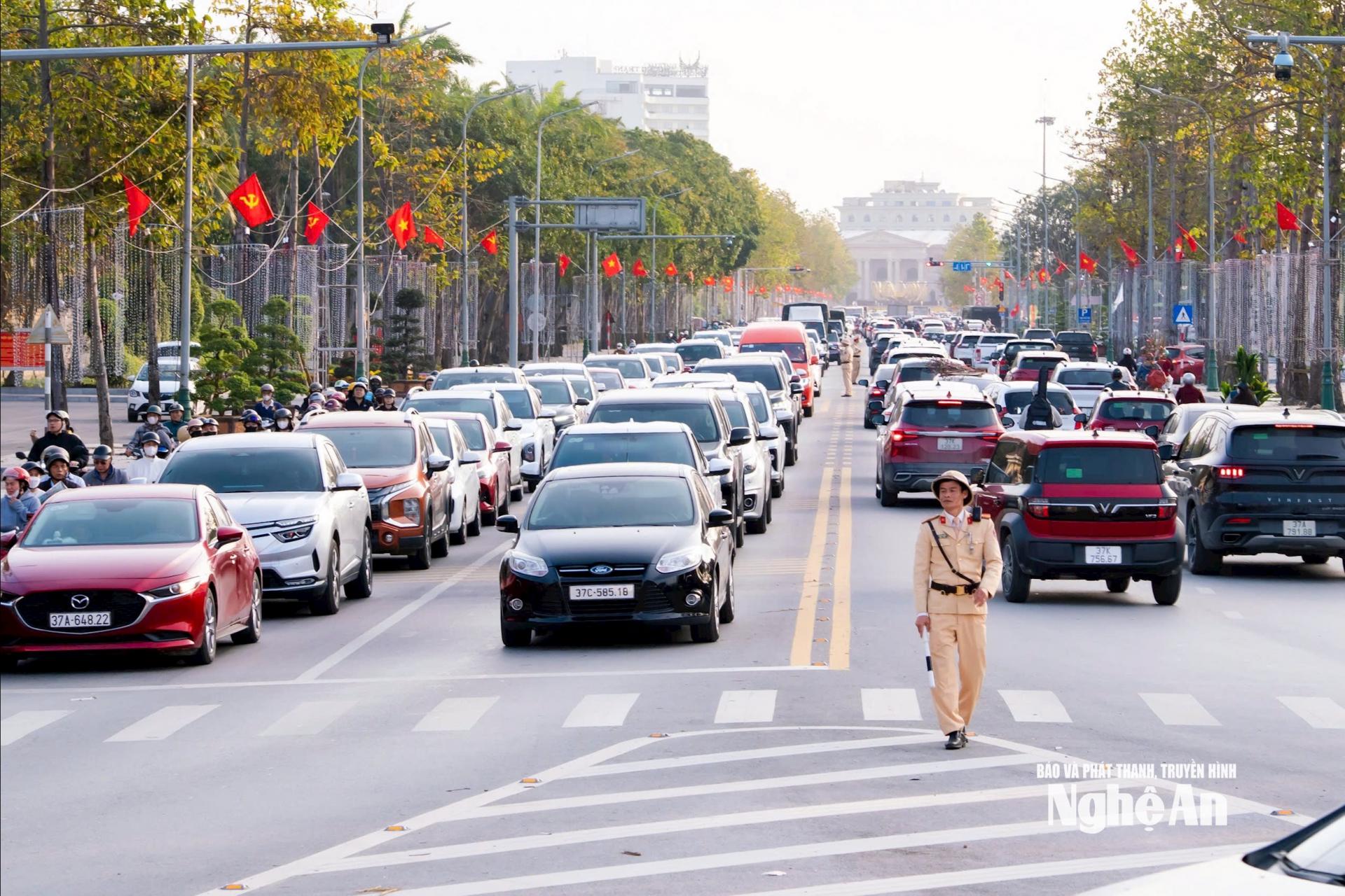 | Lưu lượng phương tiện tăng đột biến khiến nhiều tuyến đường trung tâm TP Vinh (cũ) rơi vào tình trạng quá tải cục bộ. Ảnh: Đặng Cường |