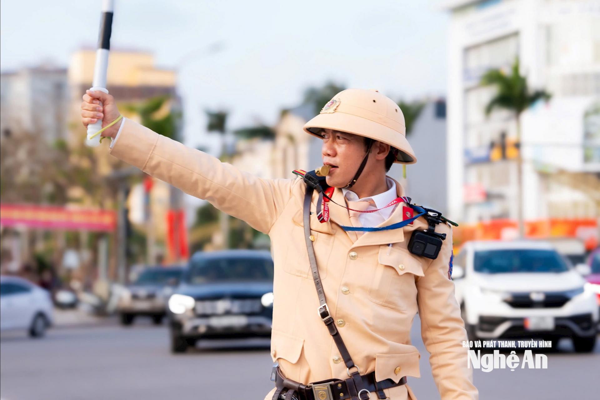 | Các cán bộ, chiến sĩ làm việc liên tục, chủ động xử lý tình huống phát sinh nhằm tránh xảy ra ùn tắc kéo dài. Ảnh: N.Đ |
