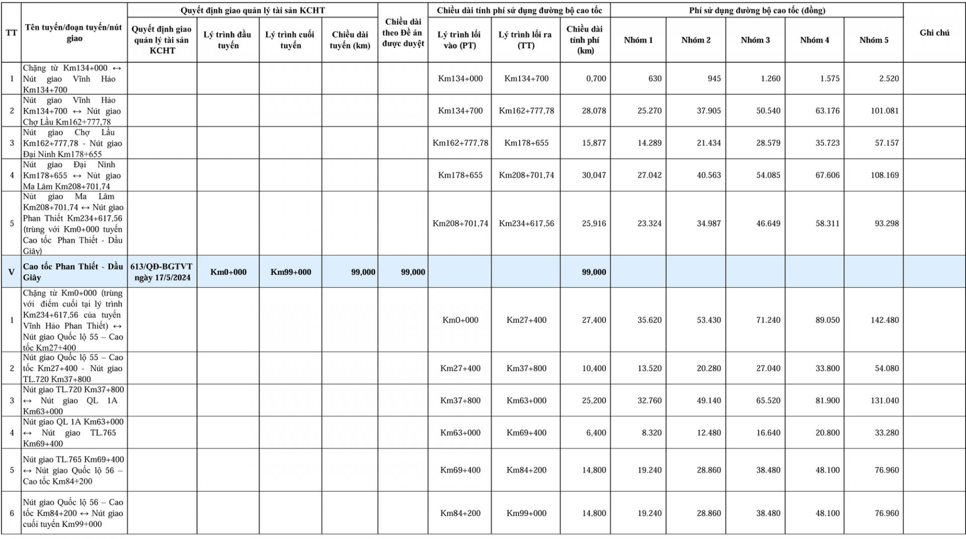 Mức phí cụ thể đối với 5 tuyến cao tốc:
