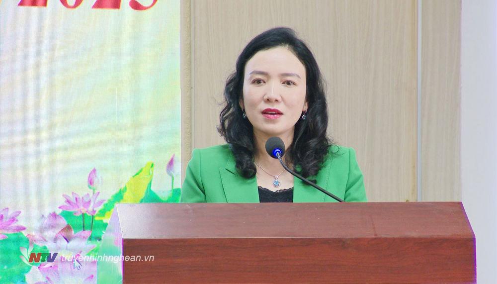 | Đồng chí Ngọc Kim Nam - Ủy viên Ban Thường vụ, Trưởng ban Tuyên giáo và Dân vận Tỉnh ủy phát biểu tại hội nghị. |