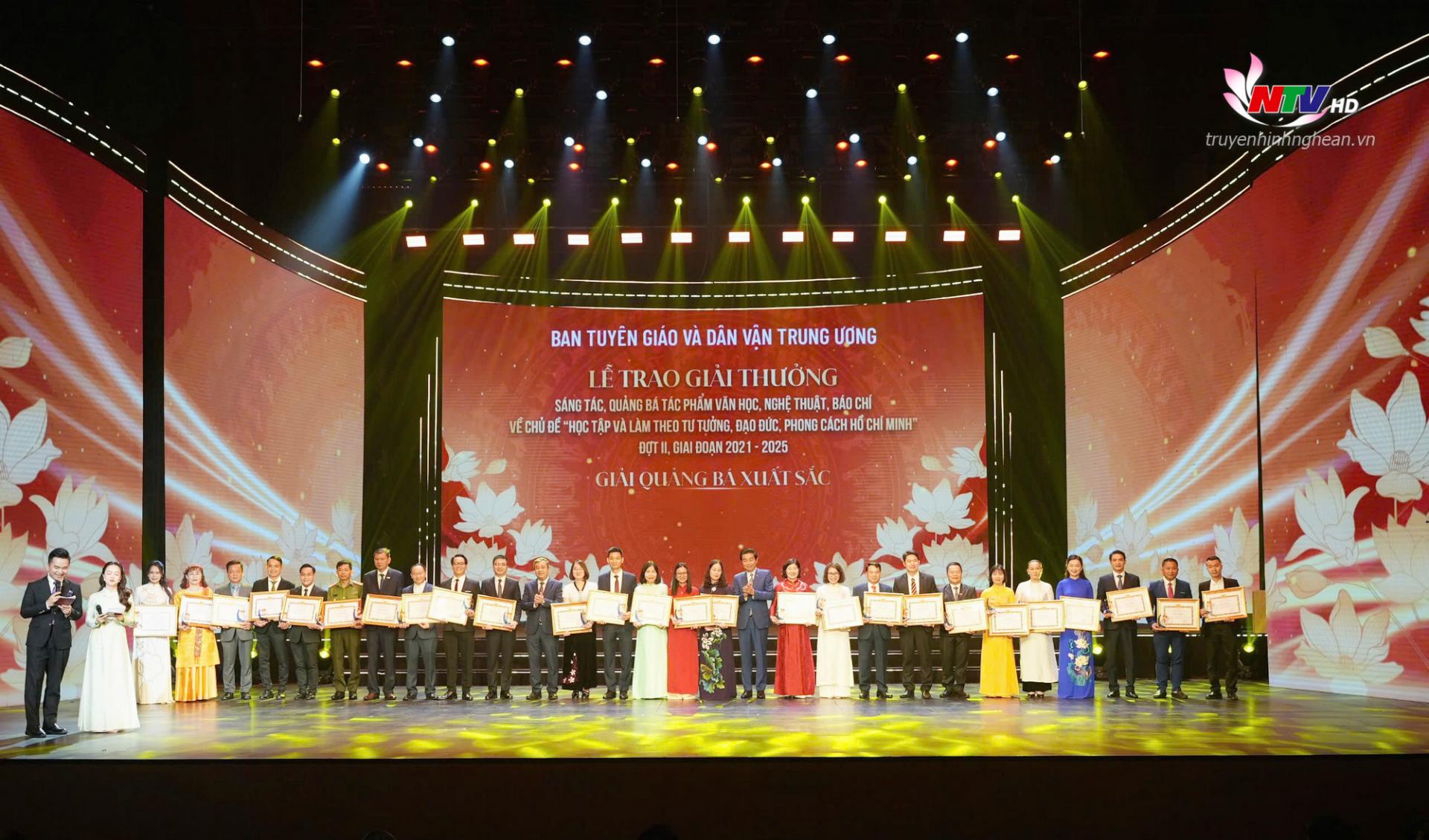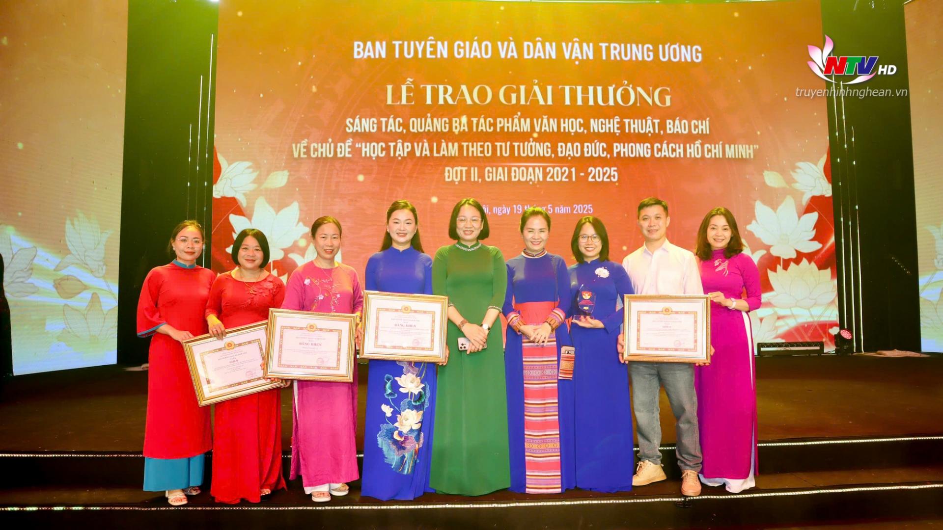 Hai đơn vị Ban Quản lý Quảng trường Hồ Chí Minh và Tượng đài Bác Hồ, tỉnh Nghệ An (lĩnh vực văn hóa) và Tỉnh uỷ Nghệ An (lĩnh vực xuất bản) được trao Giải tập thể trong hoạt động quảng bá tác phẩm văn học, nghệ thuật, báo chí về chủ đề “Học tập và làm theo tư tưởng, đạo đức, phong cách Hồ Chí Minh” đợt II giai đoạn 2021-2025.