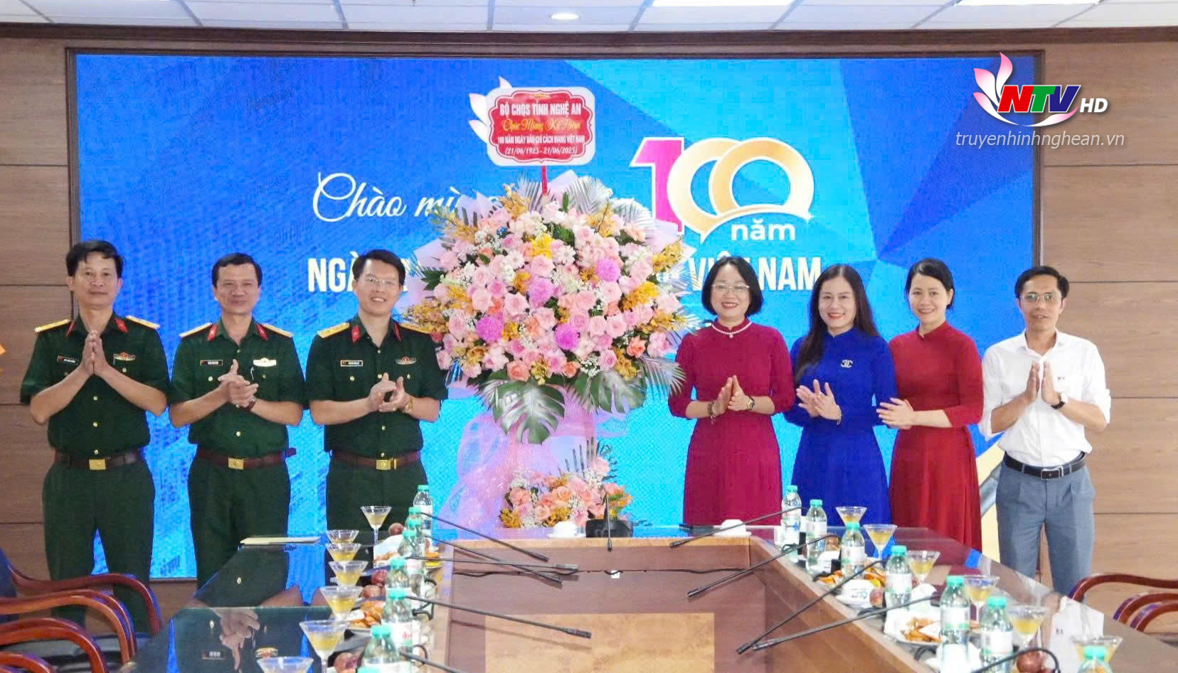 | Đoàn đại biểu Bộ Chỉ huy Quân sự tỉnh chúc mừng NTV nhân ngày 21/6. |