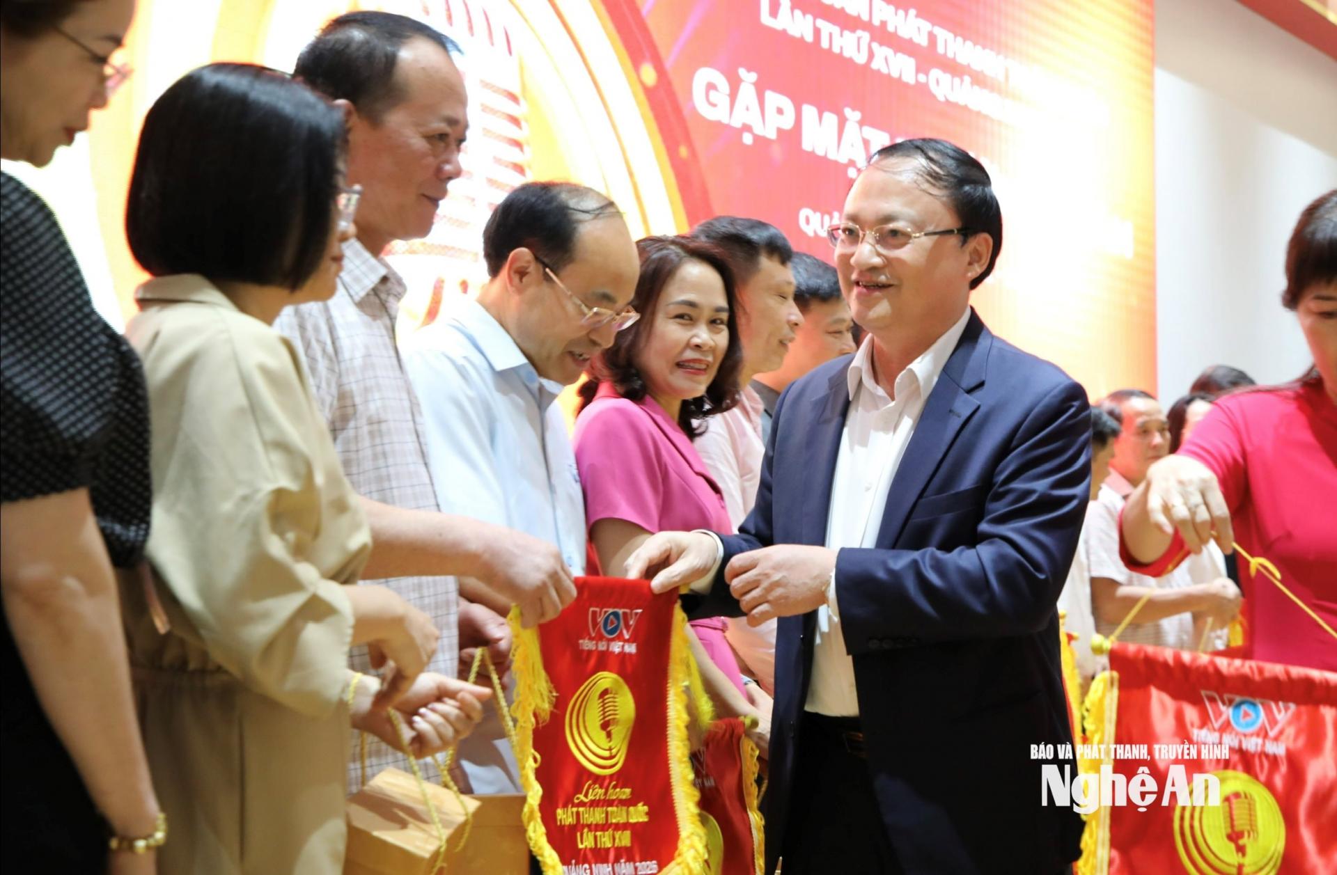 | Đồng chí Đỗ Tiến Sỹ trao cờ cho các đoàn tham gia Liên hoan Phát thanh toàn quốc lần thứ XVII - Quảng Ninh 2026. |