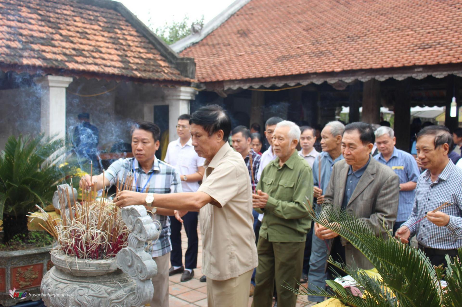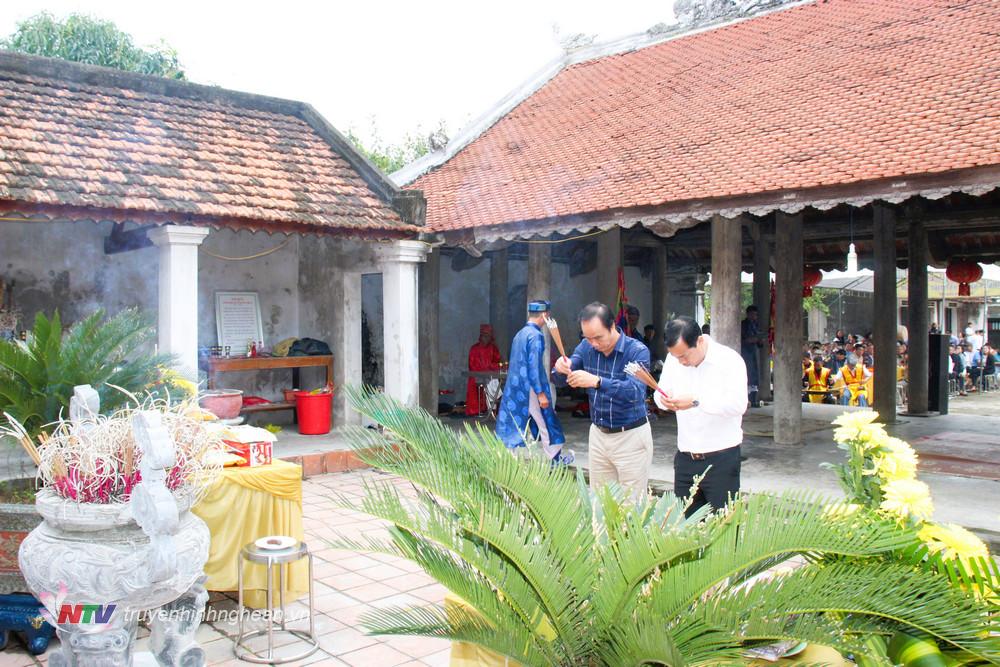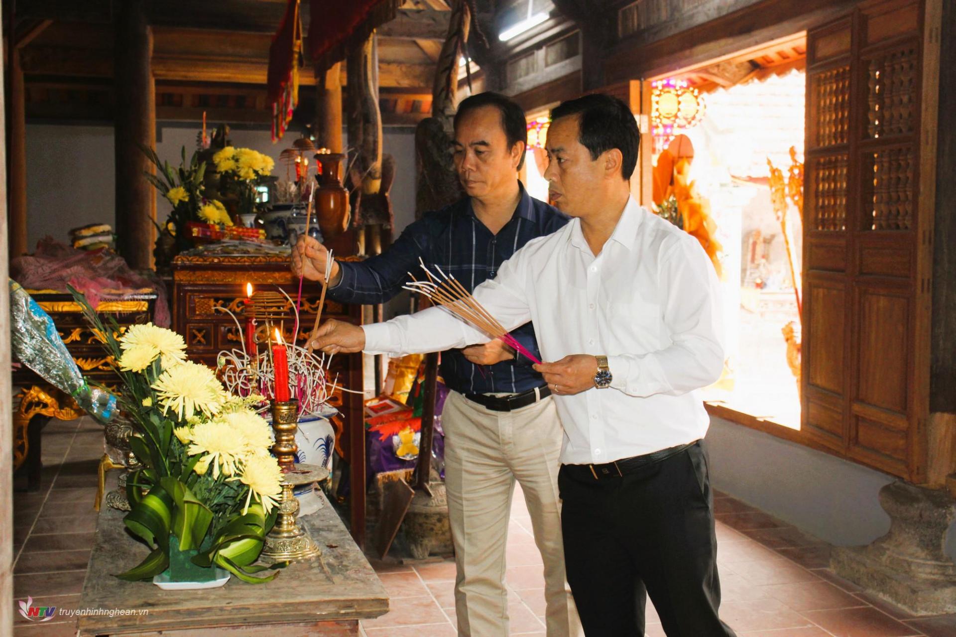 | Lãnh đạo huyện và thị trấn Cầu Giát dâng hương tại đền Voi. |