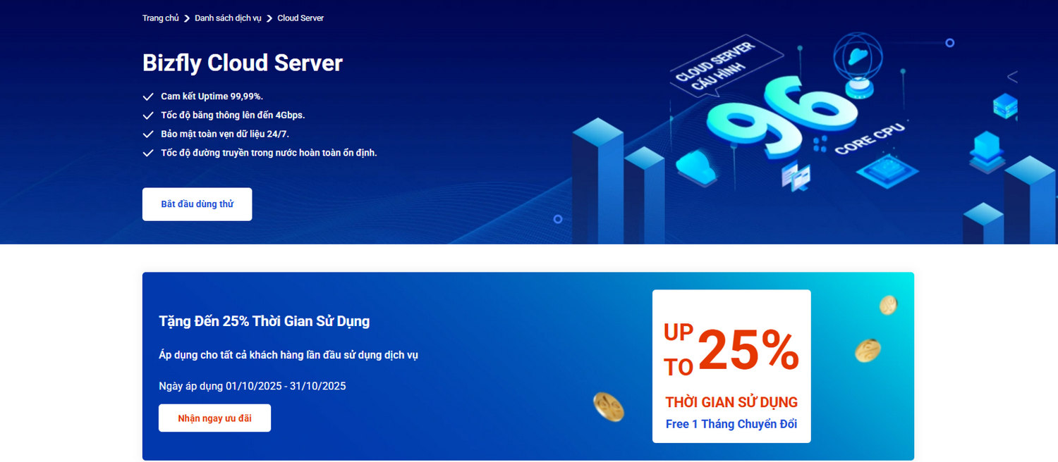 Trong môi trường kinh doanh thay đổi nhanh như hiện nay, khả năng mở rộng quy mô dịch vụ là yếu tố quyết định thành công. Bizfly Cloud Server cung cấp các gói dịch vụ Cloud Server đa dạng, cho phép doanh nghiệp dễ dàng nâng cấp hoặc hạ cấp tài nguyên theo nhu cầu thực tế mà không gây gián đoạn hoạt động.