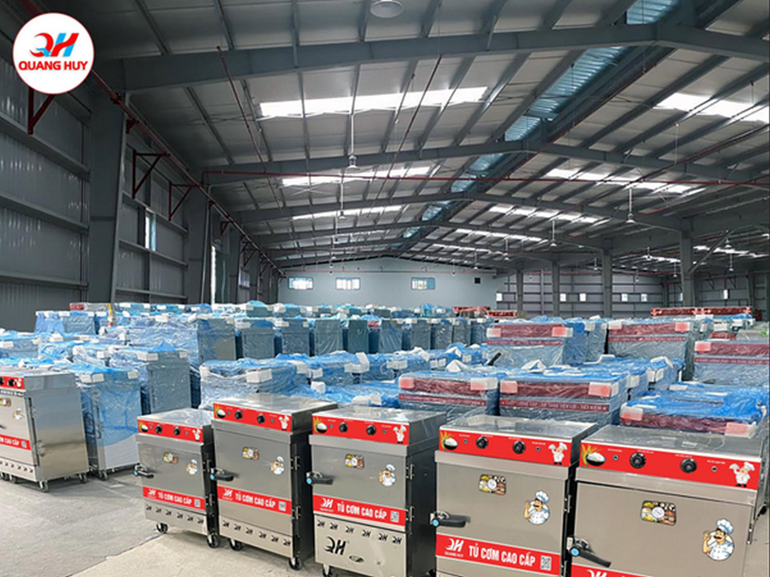 Một trong những yếu tố giúp tủ nấu cơm công nghiệp Quang Huy được đánh giá cao là quy trình sản xuất được kiểm soát chặt chẽ. Các sản phẩm được gia công trực tiếp tại xưởng với hệ thống máy móc chuyên dụng như máy cắt laser, máy chấn inox và máy hàn công nghiệp.