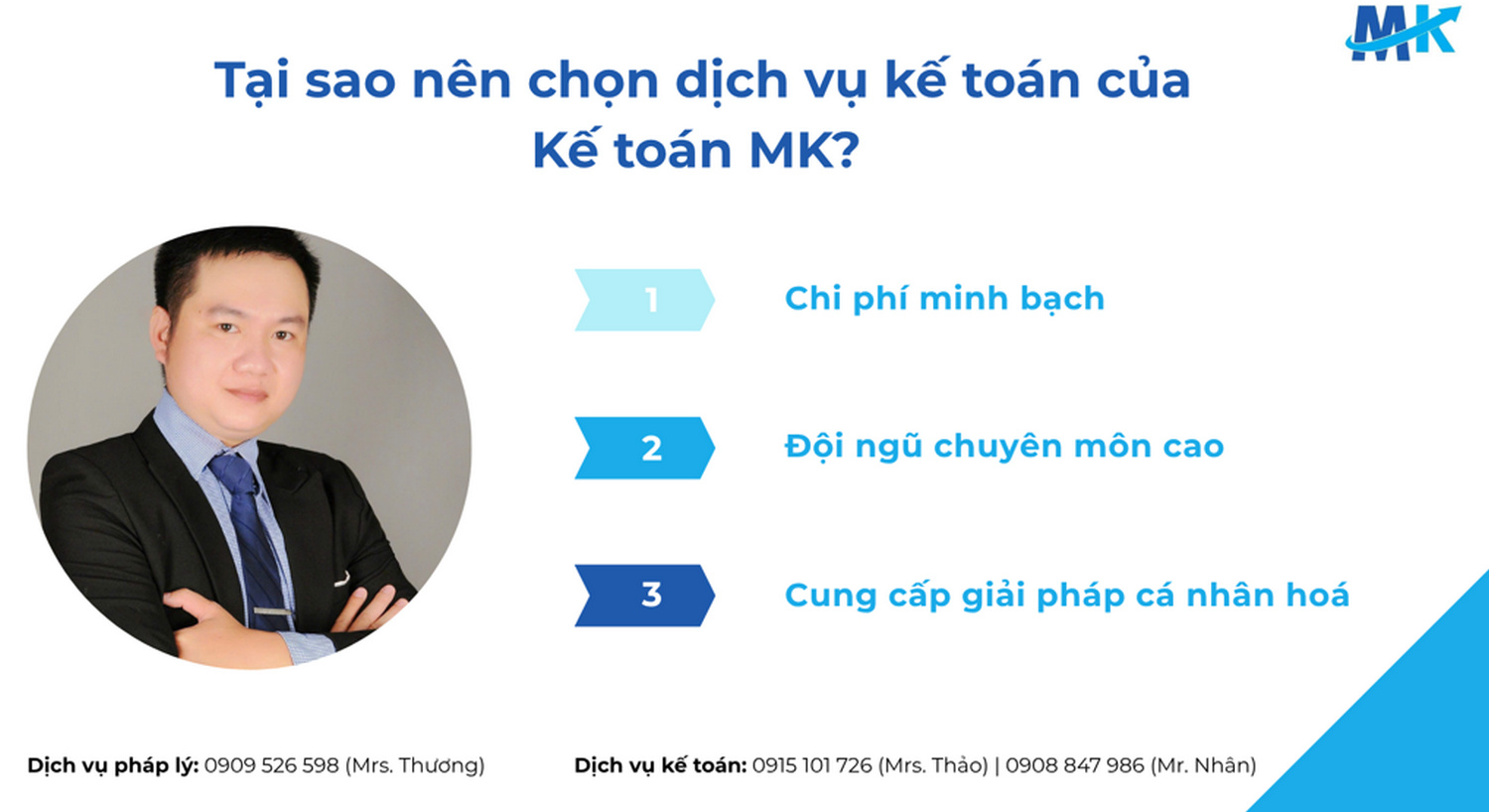 Hãy liên hệ tới Kế toán MK qua số 0915 101 726 (Mrs. Thảo) hoặc 0908 847 986 (Mr. Nhân) ngay hôm nay để được tư vấn nhanh chóng, kịp thời.