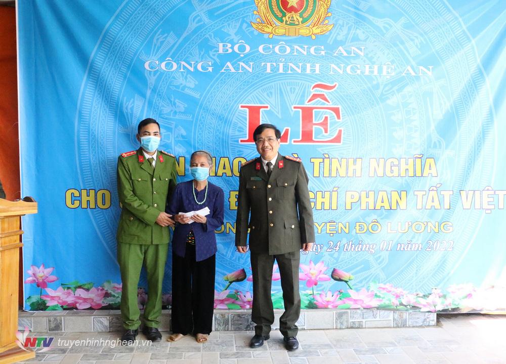 Dịp này, Công an tỉnh Nghệ An, Công an huyện Đô Lương và cấp ủy, chính quyền xã Thành Sơn, huyện Anh Sơn đã trao tặng quà cho gia đình Đại úy Phan Tất Việt.