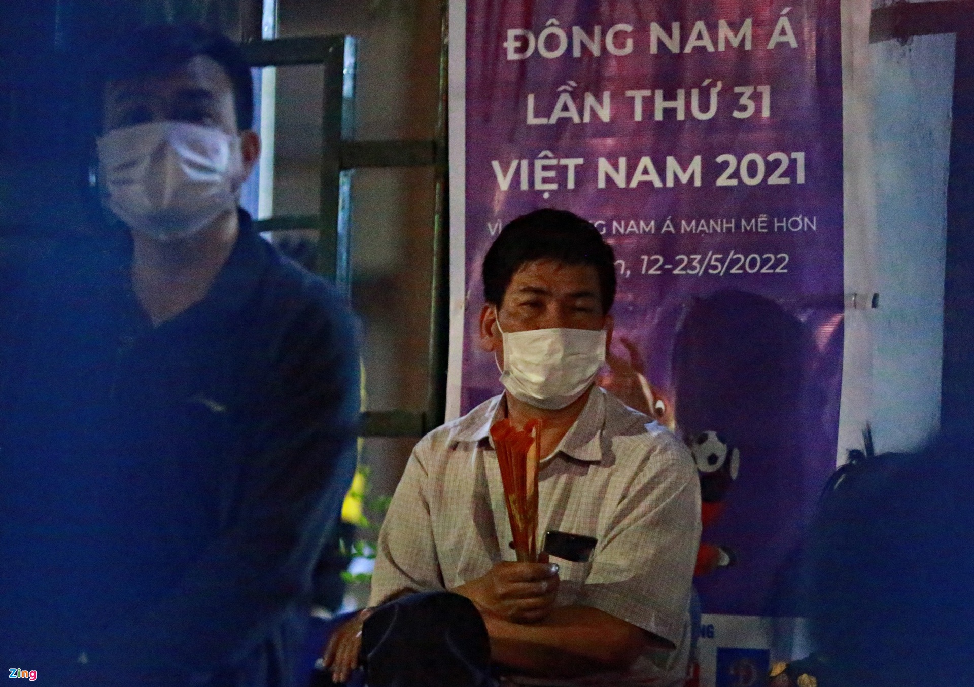 | Chị H. cho biết mình và hai con chở chồng ra đây để chờ mua vé. Chồng và ông của tôi ở lại canh vé, còn tôi chở hai cháu về nhà ngủ, chị nói khi đồng hồ đã hơn 23h. Hai đứa nhỏ tỏ ra ngạc nhiên khi thấy đông người tụ tập và bố leo rào vào trong xếp hàng. |