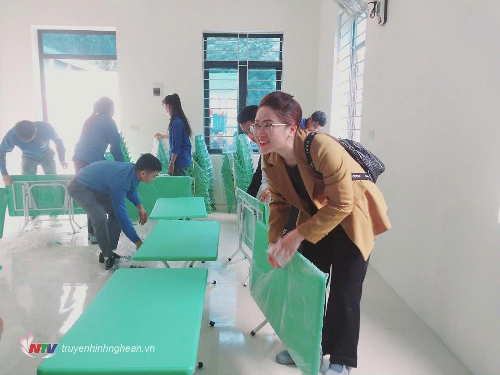Ngoài hỗ trợ kinh phí xây dựng bếp ăn, dịp này, các nhà tài trợ đã trao tặng bàn, ghế ăn, đồ dùng học tập cho nhà trường và học sinh.