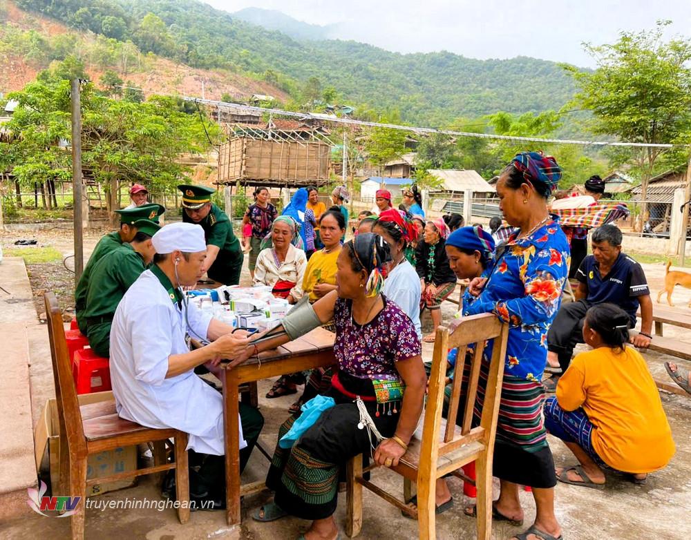 | Quân y Đồn Biên phòng Keng Đu khám, cấp phát thuốc miễn phí cho nhân dân bản Hạt Ta Vén, xã Keng Đu, huyện Kỳ Sơn. |