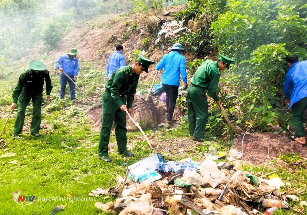 | Chi đoàn Đồn Biên phòng Keng Đu phối hợp cùng Đoàn xã Keng Đu và Nhân dân tổ chức tổng dọn vệ sinh và thu gom rác thải tại bản Hạt Ta Vén, xã Keng Đu, huyện Kỳ Sơn. |