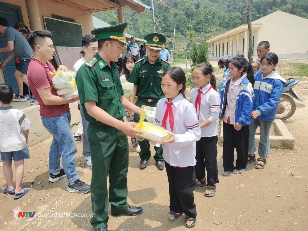 | Đồn Biên phòng Tri Lễ phối hợp với Đoàn Thiện nguyện Công ty Dược và các quầy thuốc thuộc tỉnh Nghệ An tổ chức trao tặng vật chất, đồ dùng học tập cho Trường Tiểu học Tri Lễ 4, xã Tri Lễ, huyện Quế Phong. |