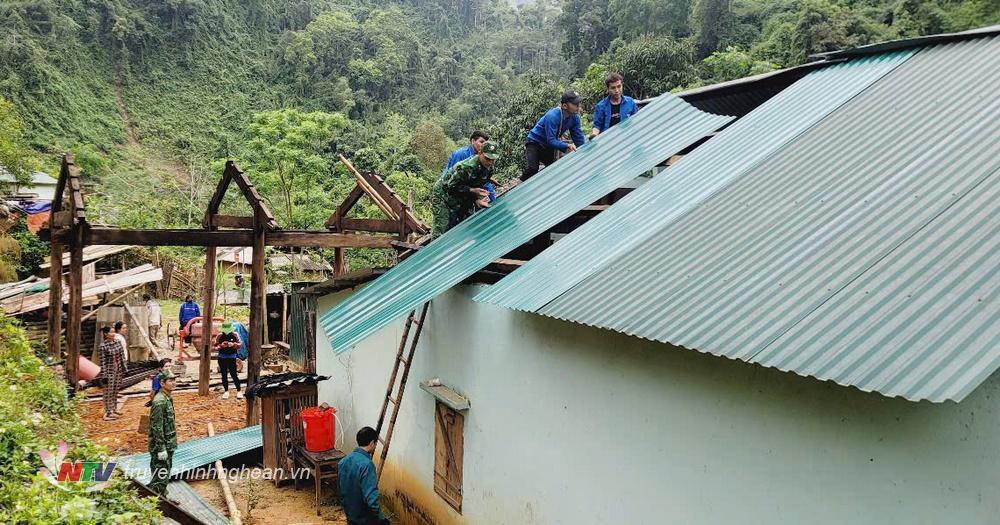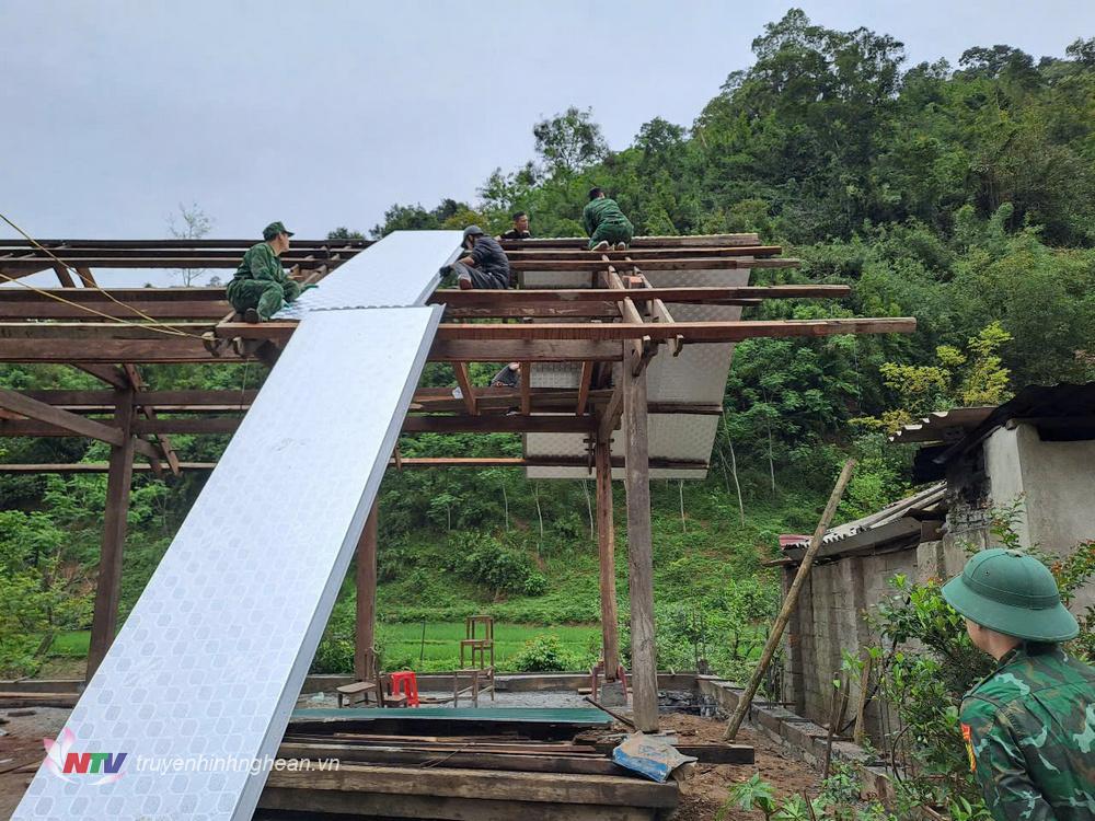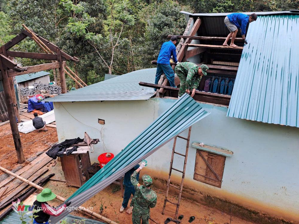 Các cán bộ, chiến sĩ đã trực tiếp giúp vận chuyển vật liệu, làm nền và lợp lại mái nhà cho các hộ dân bị ảnh hưởng, góp phần giúp người dân sớm ổn định cuộc sống.