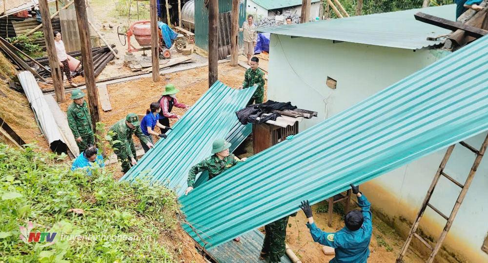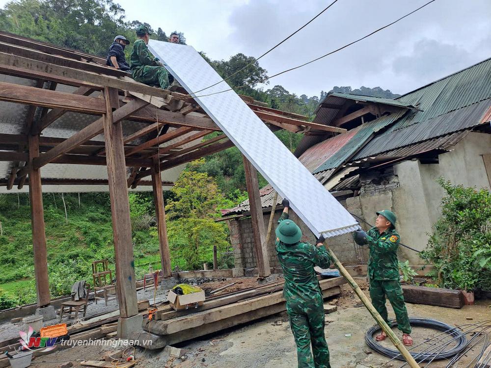 Các cán bộ, chiến sĩ đã trực tiếp giúp vận chuyển vật liệu, làm nền và lợp lại mái nhà cho các hộ dân bị ảnh hưởng, góp phần giúp người dân sớm ổn định cuộc sống.