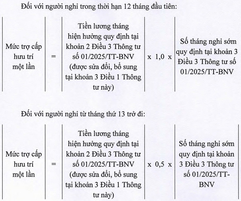 1. Trợ cấp hưu trí một lần cho số tháng nghỉ sớm: