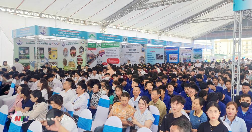 Ngày hội việc làm có sự tham gia của 15 doanh nghiệp thuộc Khu công nghiệp WHA Nghệ An, với nhu cầu tuyển dụng lên đến 12.000 vị trí việc làm, bao gồm cả lao động phổ thông và lao động đã qua đào tạo.