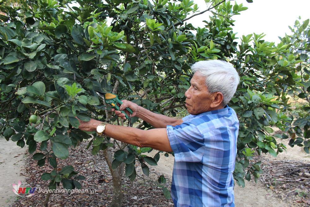 | CCB Nguyễn Xuân Dinh tích cực phát triển kinh tế vườn từ các loại cây lấy quả. |