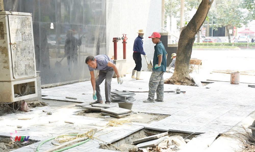 | Vỉa hè đường Đào Tấn đang được cải tạo. |