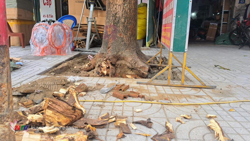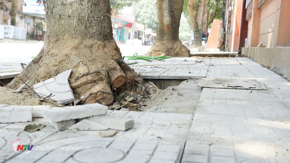 Tuy nhiên, do phải tạo mặt bằng cốt nền vỉa hè phù hợp để lát gạch nên bộ rễ các cây xanh dọc tuyến đường bị cắt quá nhiều, tiềm ẩn nguy cơ bị đổ gãy trong mưa bão.