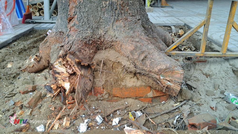 | Các cây xanh bị chặt bộ rễ tiềm ẩn nguy cơ bị đổ khi có mưa, gió lớn. |