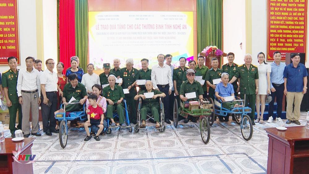 Nhân dịp kỷ niệm 50 năm Ngày Giải phóng miền Nam, thống nhất đất nước (30/4/1975 - 30/4/2025), Hội Hỗ trợ gia đình liệt sĩ và nhà tài trợ đã trao tặng phần quà trị giá 55 triệu đồng cho Trung tâm Điều dưỡng Thương binh Nghệ An và Khu điều dưỡng Thương binh Tâm thần kinh tỉnh Nghệ An.