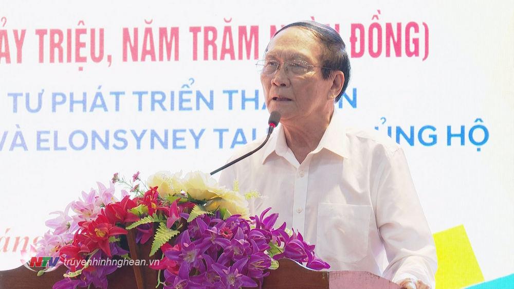 | Ông Hồ Đức Thành - Chủ tịch Hội Hỗ trợ gia đình liệt sĩ và nhà tài trợ phát biểu tại buổi lễ. |