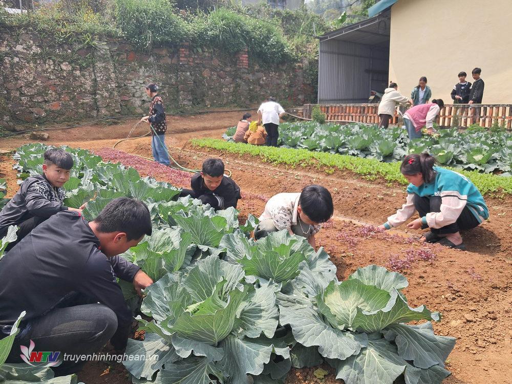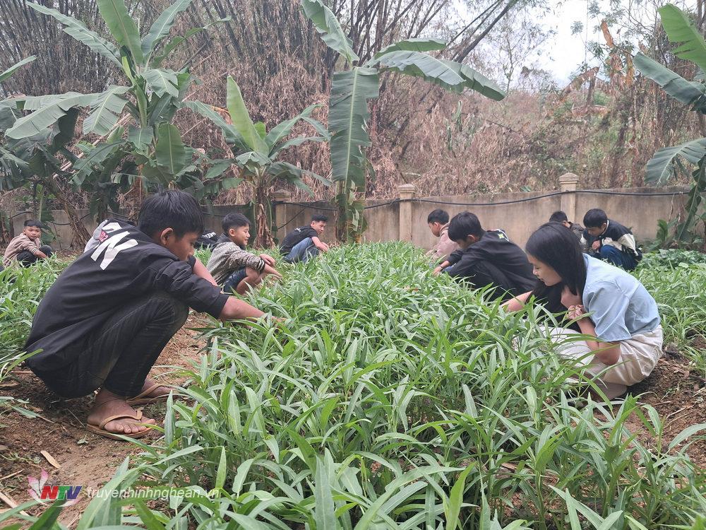| Bên cạnh chăn nuôi, các em còn cùng người dân cải tạo đất, dựng nên những vườn rau sạch. |