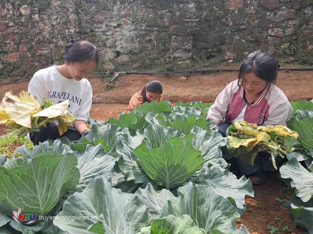 | Không chỉ phát triển mô hình kinh tế, học sinh các dân tộc vùng cao Nghệ An còn chung tay xây dựng trường lớp xanh – sạch – đẹp. |