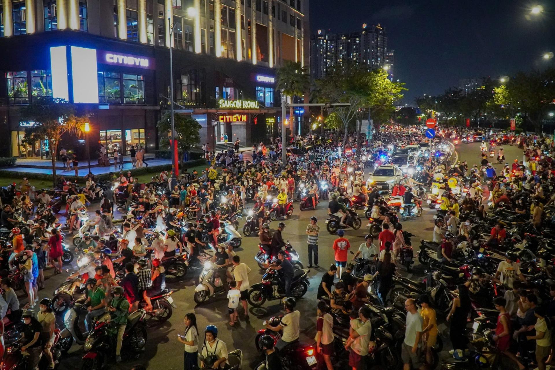 | Chương trình biểu diễn pháo hoa bắt đầu từ 21h nhưng từ chập tối, biển người đã xuất hiện tại khu vực trung tâm Thành phố để có được vị trí ngắm pháo hoa thuận lợi nhất. |
