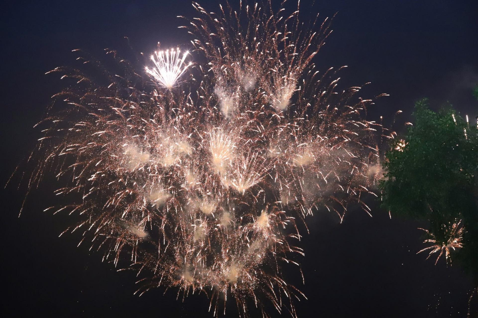 | Người dân thích thú ghi lại khoảnh khắc pháo hoa rực sáng trên bầu trời. |