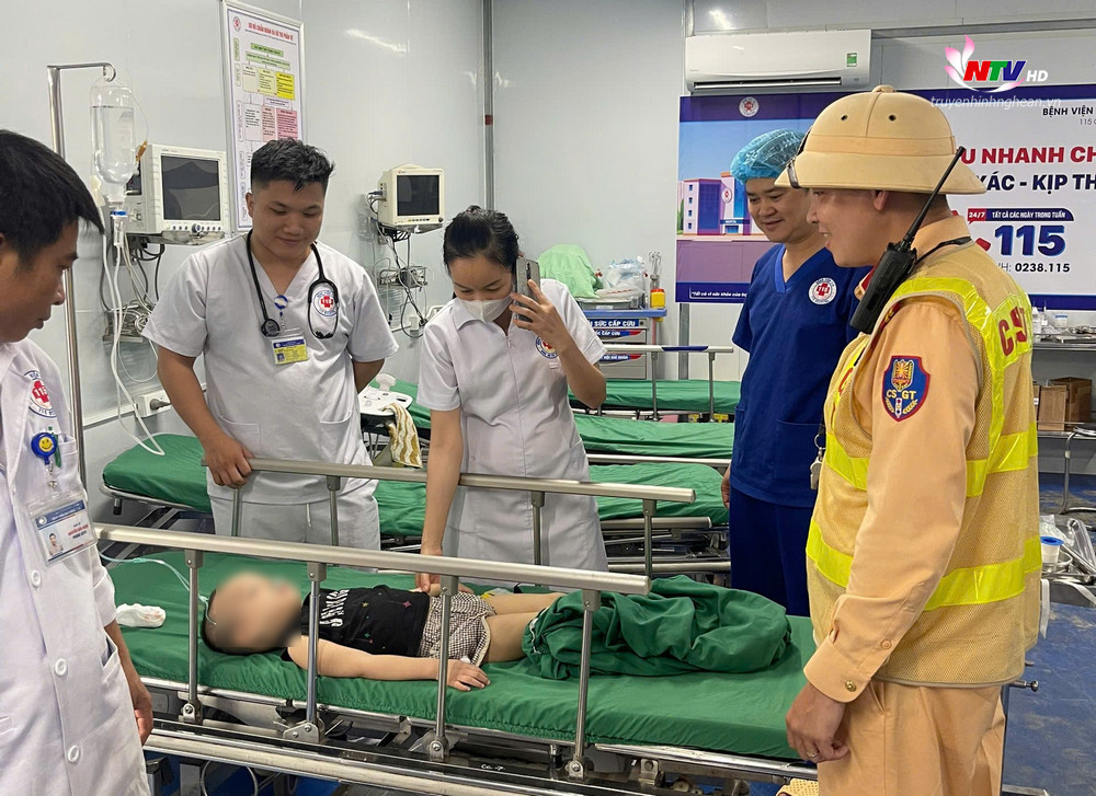 | Cháu T.G.B. được Tổ CSGT địa bàn thành phố Vinh đưa đi cấp cứu kịp thời. |