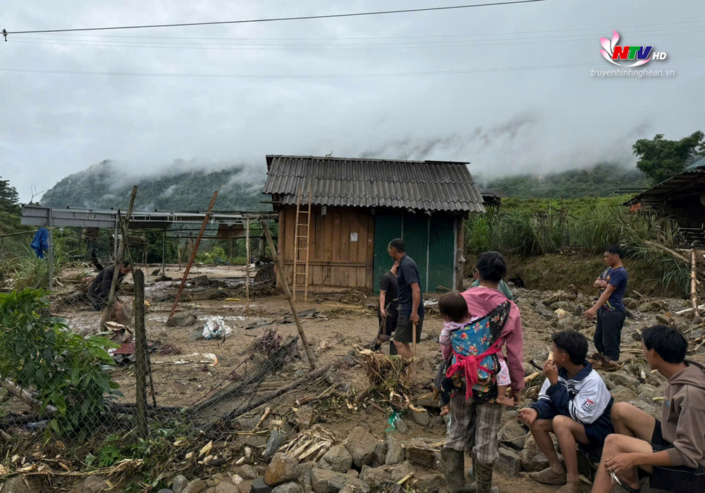 Tại xã Nhôn Mai (huyện Tương Dương), lũ quét xảy ra trong đêm khiến 15 nhà dân hư hỏng, nhiều hộ phải tháo dỡ khẩn cấp để tránh sập đổ. Nhiều tài sản, vật nuôi và hoa màu bị đất đá vùi lấp. Tuyến Quốc lộ 16 dẫn vào xã bị chia cắt do sạt lở tại các điểm như bản Xói Voi và bản Thâm Thẩm. Đồn Biên phòng Nhôn Mai đã điều 25 cán bộ, chiến sĩ phối hợp với chính quyền địa phương giúp dân khắc phục hậu quả, đồng thời thống kê thiệt hại và triển khai các biện pháp đảm bảo an toàn.
