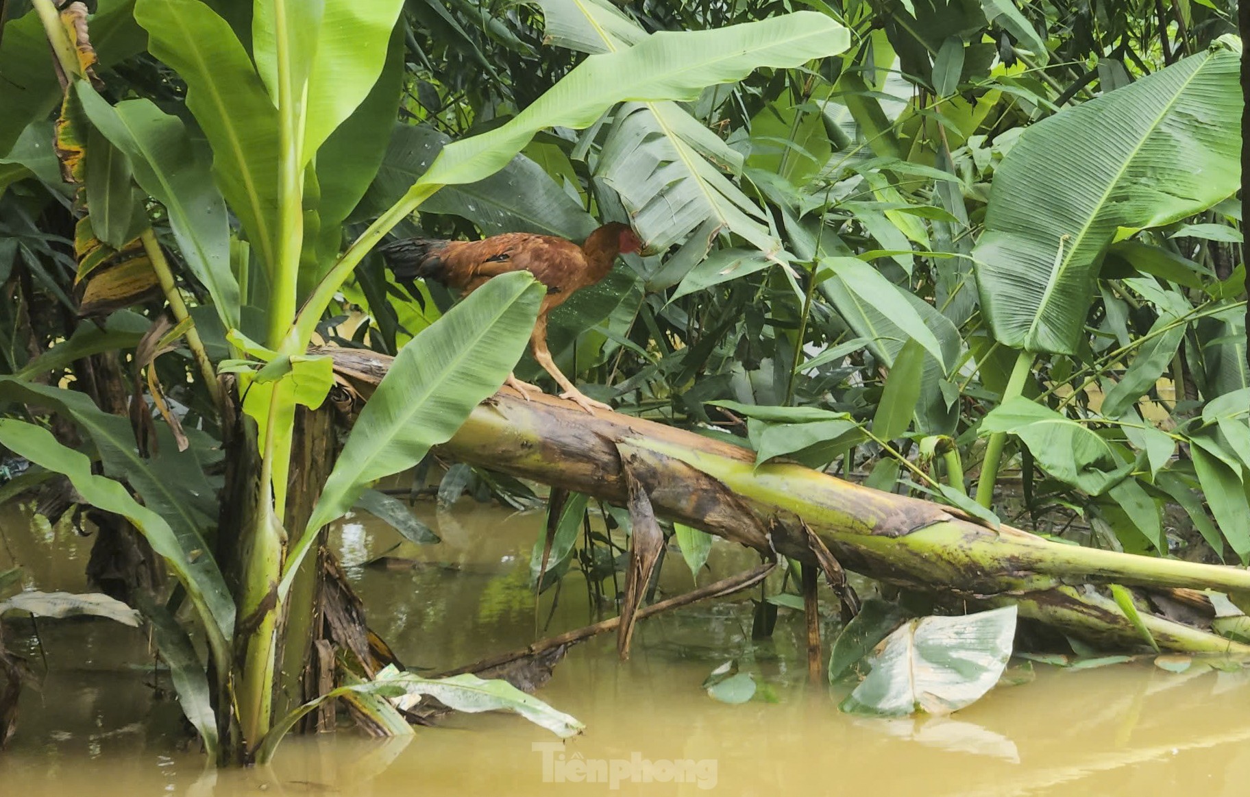 | Người dân phải đưa gia súc vào nhà trú tạm khi mưa lũ đổ về nhanh. |