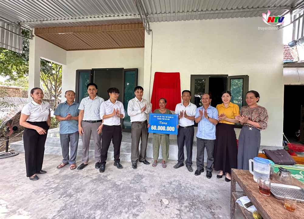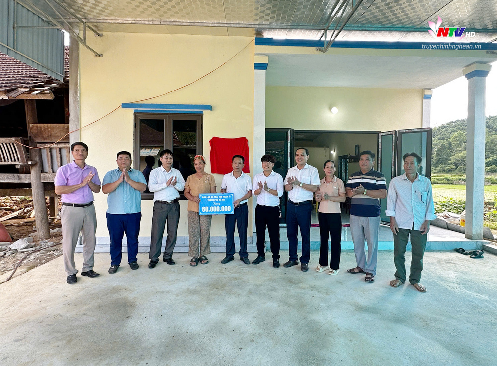 | Đoàn bàn giao hỗ trợ nhà ở cho bà Phan Thị Hoa, bản Bành, xã Châu Quang. |