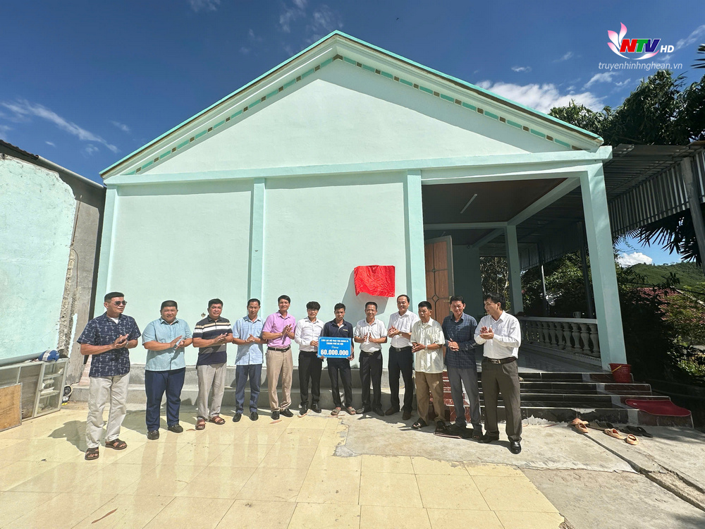 | Đoàn bàn giao hỗ trợ nhà ở cho gia đình bà Vi Thị Hà, xóm Liên Minh, xã Châu Thái. |