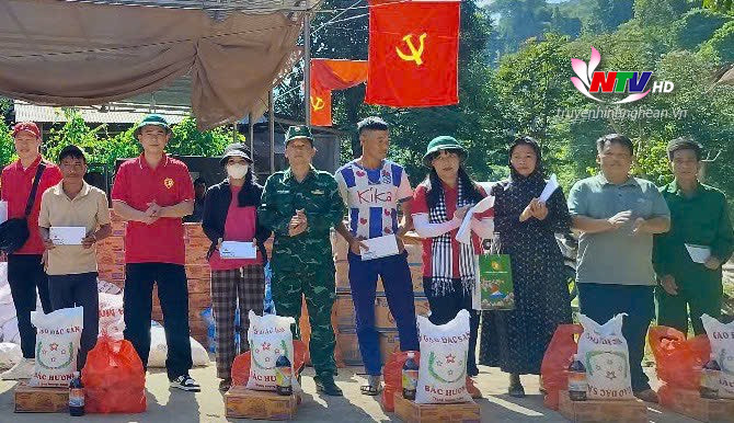 | Đồn Biên phòng Nhôn Mai phối hợp với các đơn vị trao quà hỗ trợ cho người dân bị thiệt hại do lũ quét tại xã Nhôn Mai, huyện Tương Dương. |
