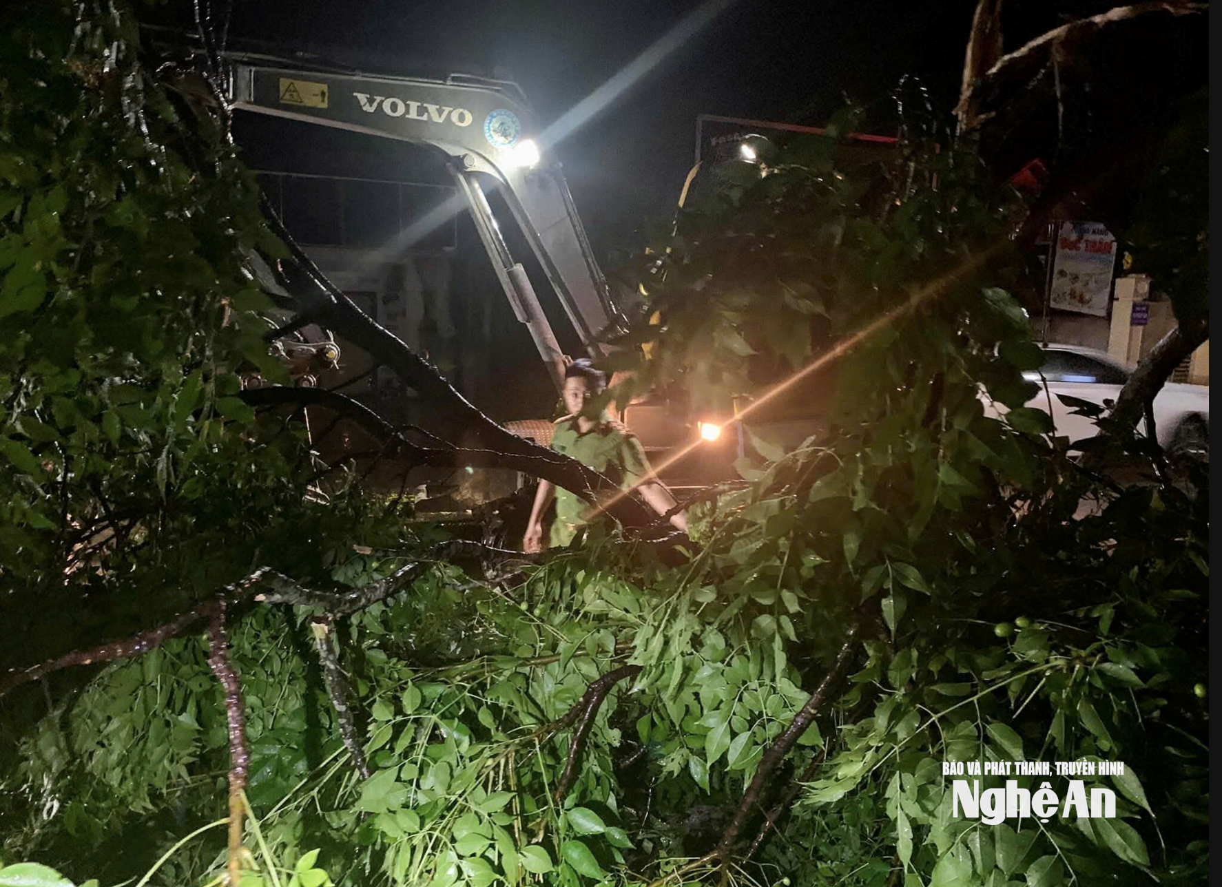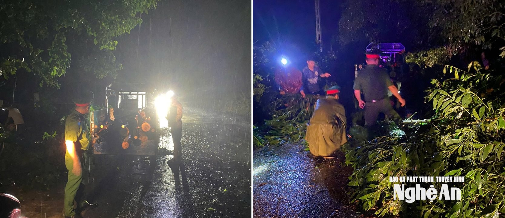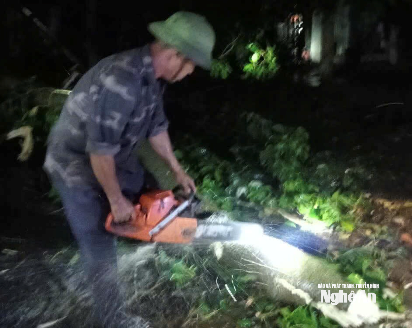 | Xử lý cây gãy đổ trên địa bàn xã Thần Lĩnh (xã Nghi Đồng, Nghi Hưng và Nghi Phương cũ). Ảnh: PV |