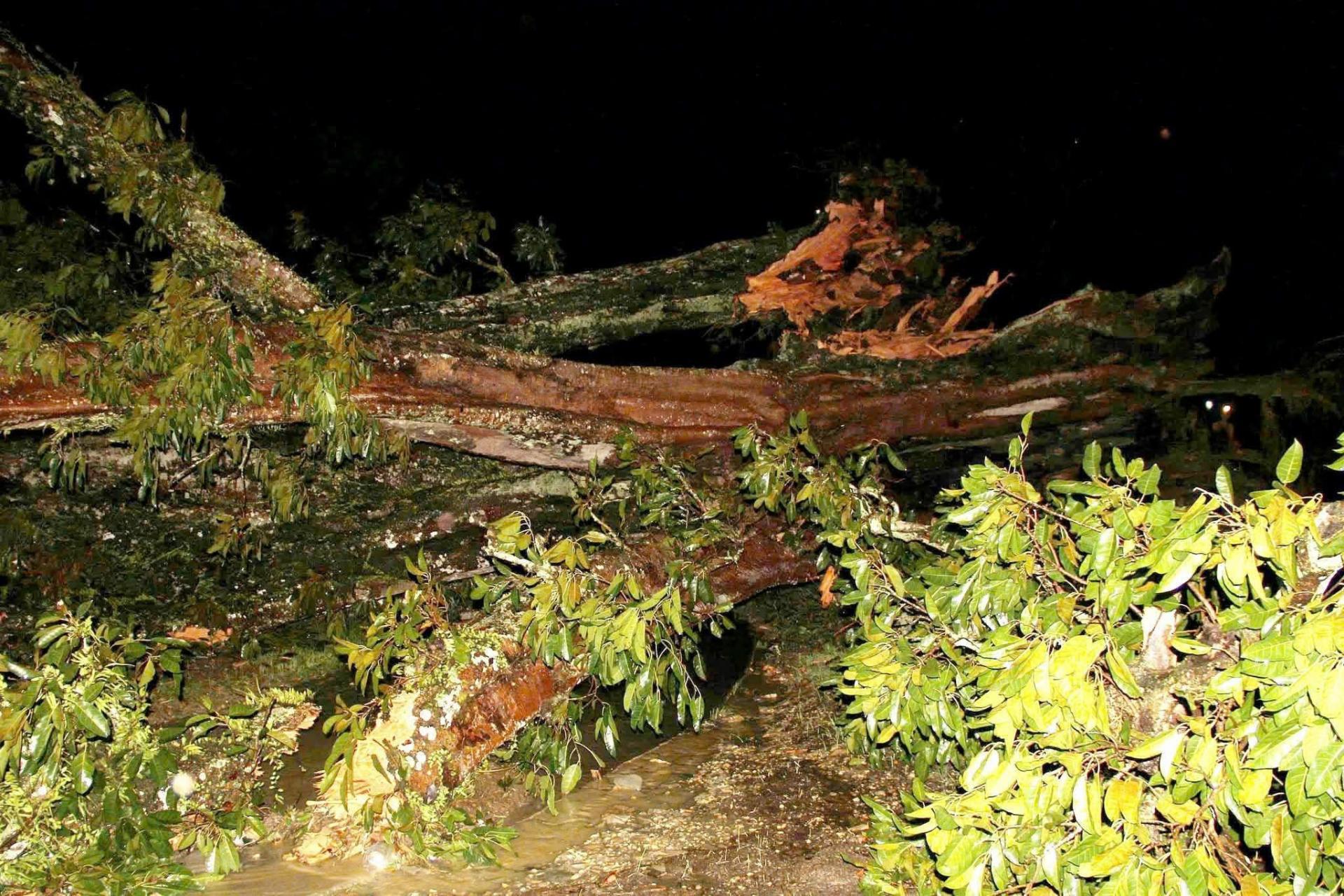 | Cũng trong đêm 19/7, trên địa bàn xã Mường Quàng xảy ra mưa lớn kèm theo gió giật mạnh, khiến cây đa cổ thụ tại bản Cắm Nọc bị bật gốc và đổ xuống khu vực đường liên bản. Cây đa cổ thụ nói trên có tuổi đời hàng trăm năm, gắn liền với đời sống văn hóa, tâm linh của nhân dân 2 bản Cắm Nọc và bản Cắm Pỏm. Ảnh: PV |