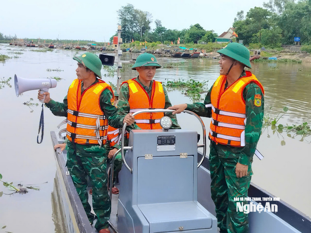 | Đồn Biên phòng cửa khẩu cảng Cửa Lò - Bến Thuỷ hướng dẫn các hộ dân di chuyển, sắp xếp phương tiện, lồng bè nuôi trồng thủy sản đến vị trí an toàn. |