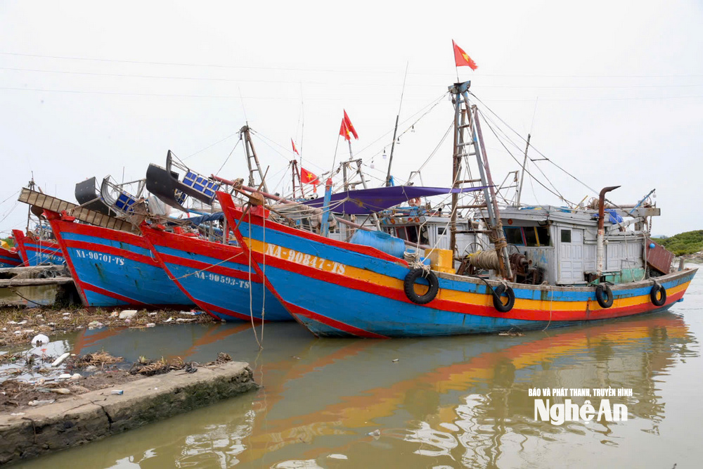 | Phương tiện của ngư dân xã Diễn Châu, Nghệ An neo đậu an toàn tại bến |