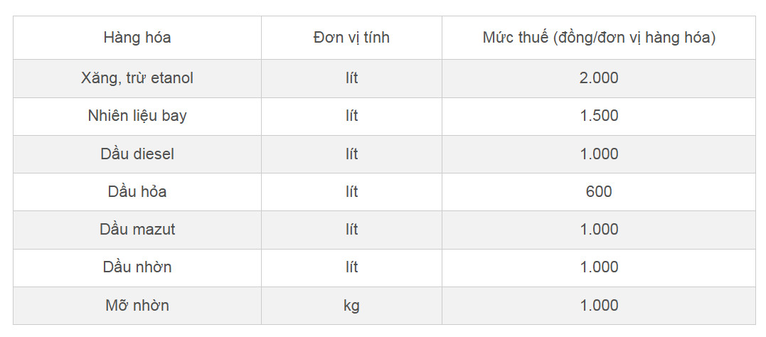 Nghị quyết số 109/2025, Ủy ban Thường vụ Quốc hội quyết nghị từ 1/1/2026 tới hết năm 2026 mức thuế bảo vệ môi trường đối với xăng, dầu, mỡ nhờn được quy định như sau: