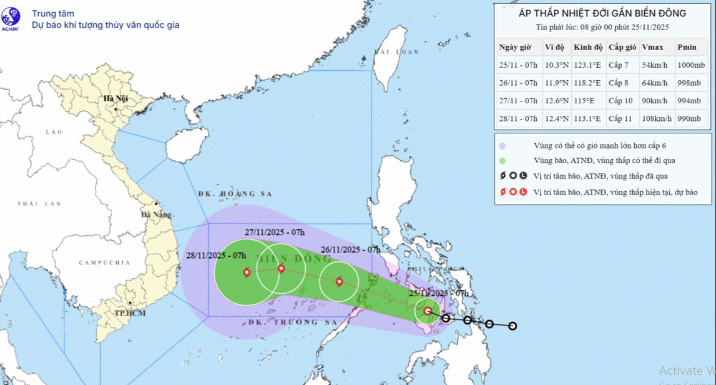 Dự báo, trong khoảng thời gian từ nay đến ngày 28.11.2025 bão số 15 di chuyển theo hướng tây tây bắc, sau đó di chuyển chủ yếu theo hướng tây với tốc độ khoảng 20km/h.