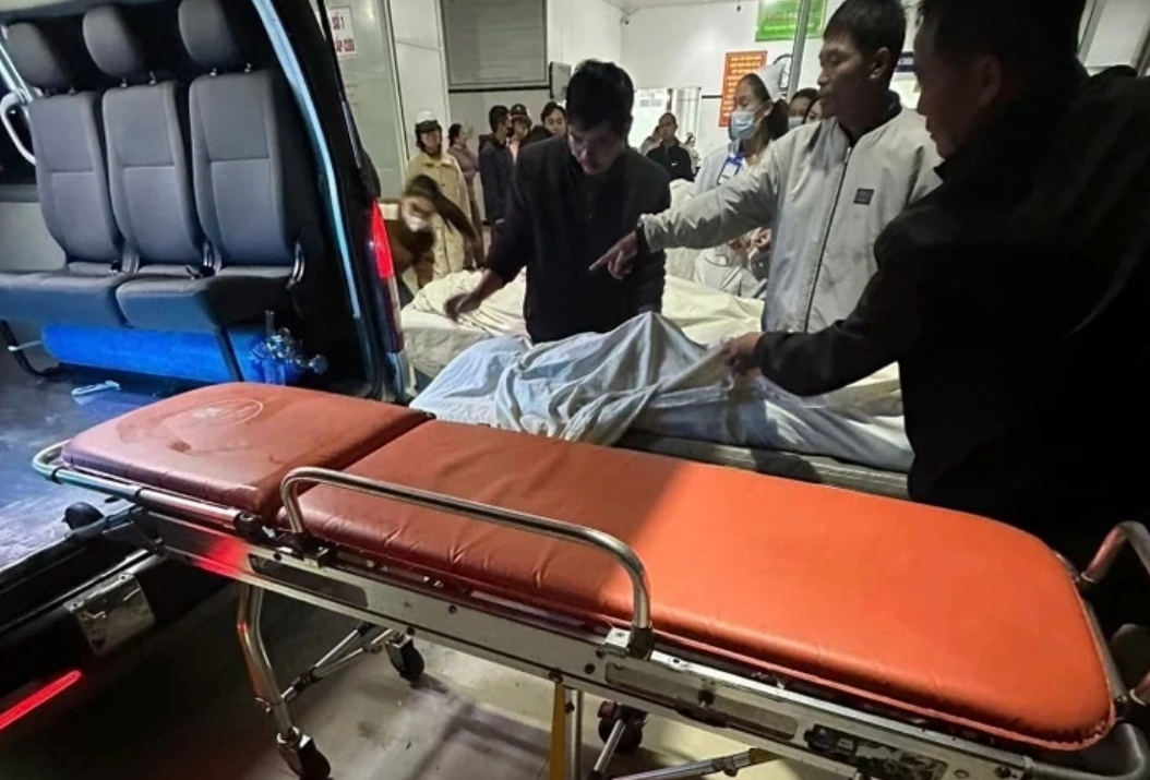 | Xe chữa cháy đưa nạn nhân đi cấp cứu. |