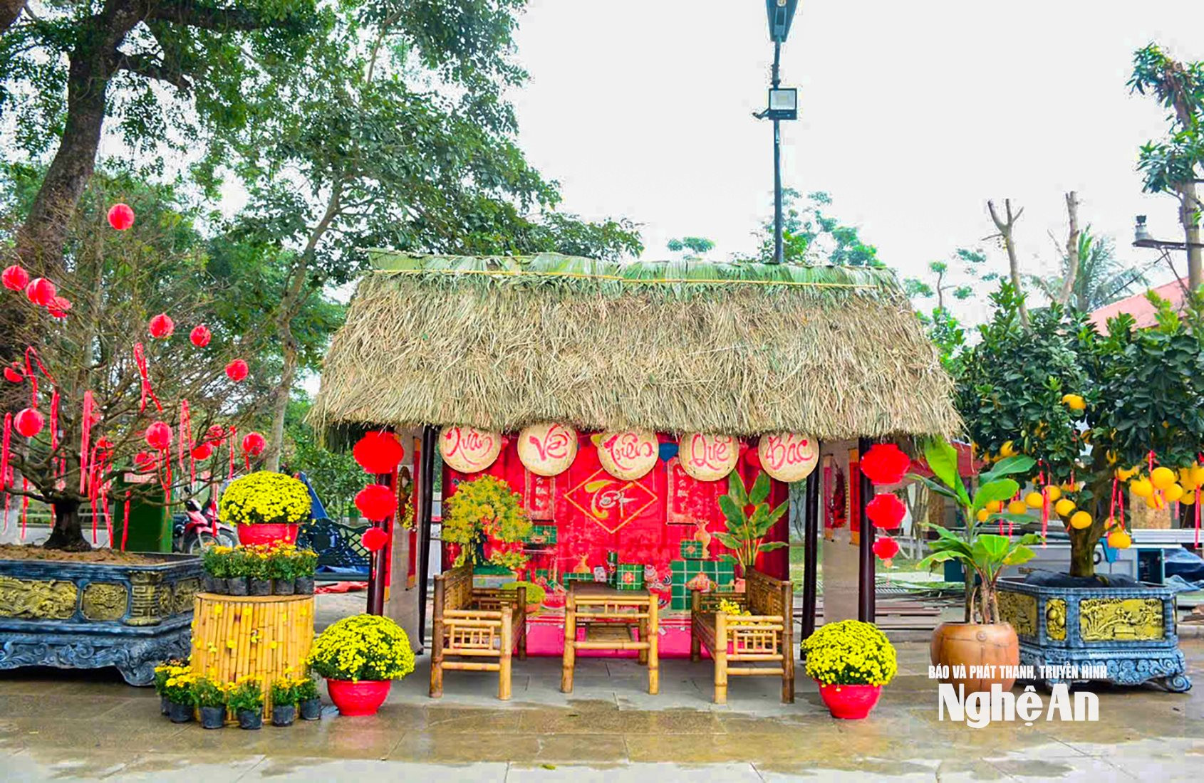 | Một góc trang trí Tết tại Khu du lịch Mường Thanh Greenland Diễn Lâm. Ảnh: Minh Quân |