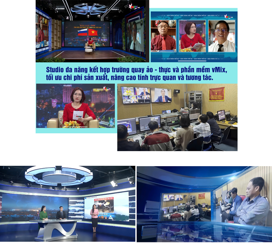 Không gian sản xuất cũng được mở rộng bằng vMix và hệ thống trường quay ảo thực. với các bản tin nhiều màu sắc tươi mới sản xuất phát sóng hàng ngày (“Bàn tròn thế sự”, “Trò chuyện cuối tuần”, “Bản tin thời tiết”, …) và hơn 150 chương trình mỗi năm được kết nối từ xa với chuyên gia trong và ngoài nước, tiết kiệm chi phí mà vẫn gia tăng sự tương tác và chiều sâu nội dung.